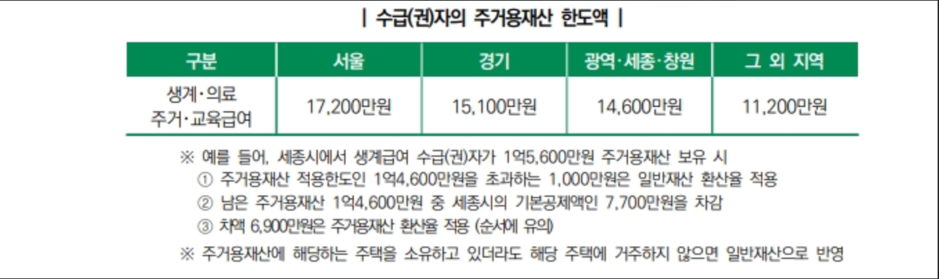 -재산기준:거주 지역별로 정해진 재산한도 이하만 보유